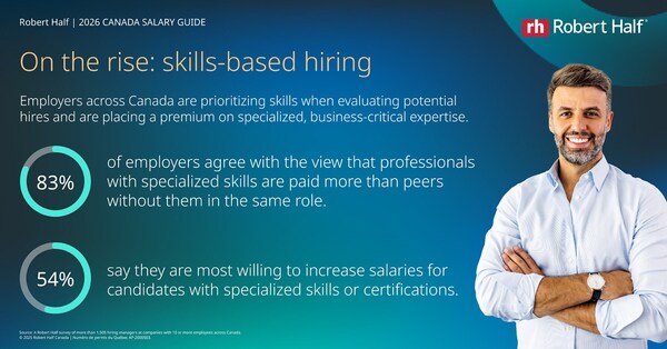 "In today's job market, specialized skills are key differentiators, both for businesses seeking the talent they need to drive critical priorities, and for professionals to command salary premiums," said Koula Vasilopoulos, Senior Managing Director, Robert Half, Canada. "Organizations need to invest in the expertise that drives business forward, and understanding market value for top talent is a crucial first step. Workers equally need to know what their competition is bringing to the table so they can have informed and effective negotiations around salary and total compensation."